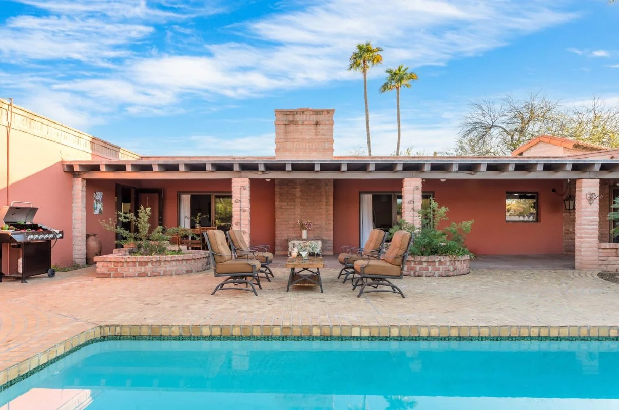 A Spanish-style hacienda with allll the romantic desert vibes. Think antique doors, terra-cotta accents, Camelback Mountain views, and a stone courtyard. This 5-bed, 3-bath beauty is cozy but luxe—with a firepit, pool, hot tub, and photo-ready backdrops everywhere.